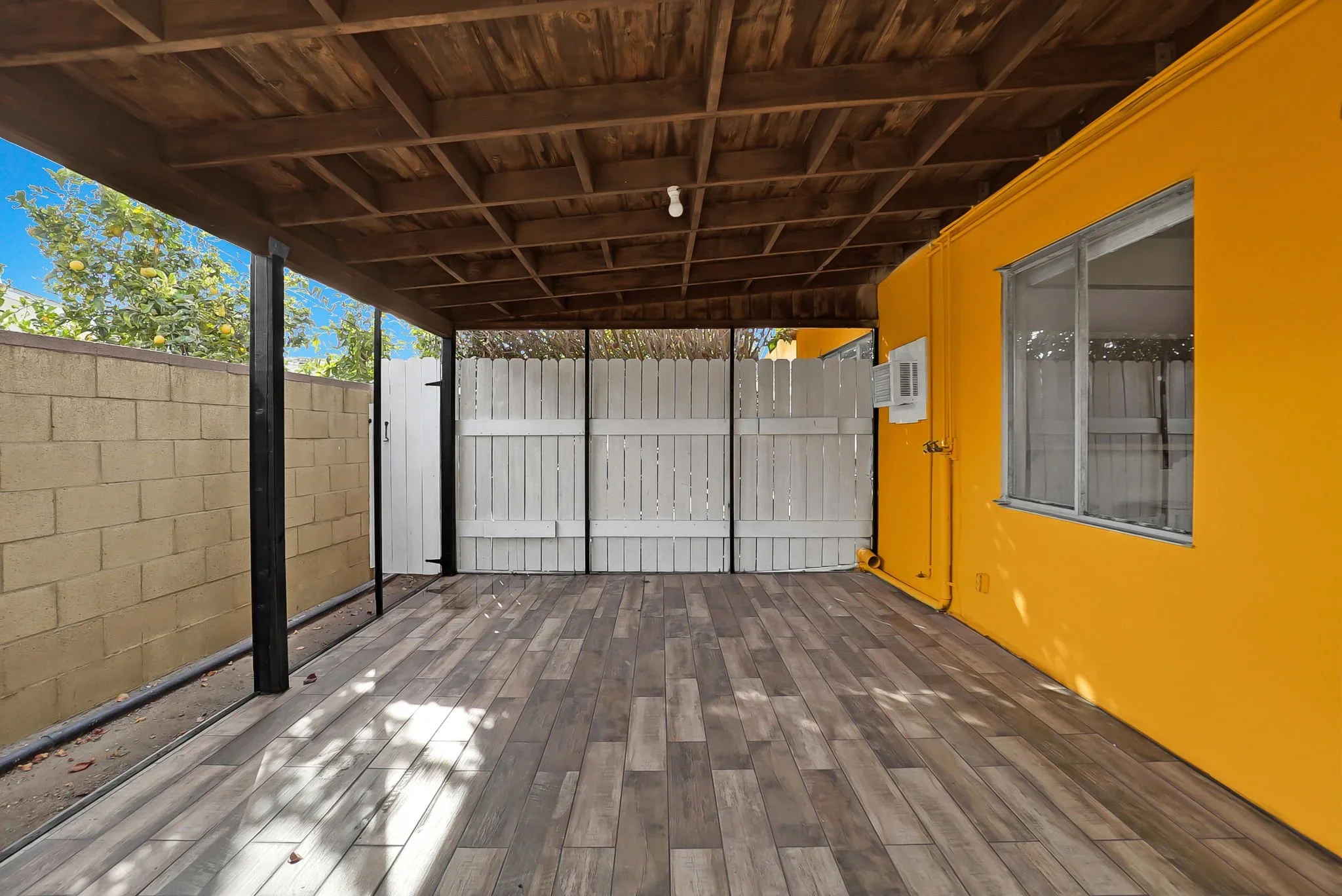 Security deposit $2645 Owner pays water, trash & gardener. Impeccable, double bedroom unfurnished apartment in a quiet four-plex available for rent. New air conditioner, new range oven, new refrigerator, new paint, new carpet, newly remodeled bathroom & kitchen. Private outdoor deck with covered roof can accommodate BBQ & social gathering OR private washer & dryer. Fully enclosed yard space exclusive to this particular unit. Private parking space & laundry facilities on premises & small pet negotiable.